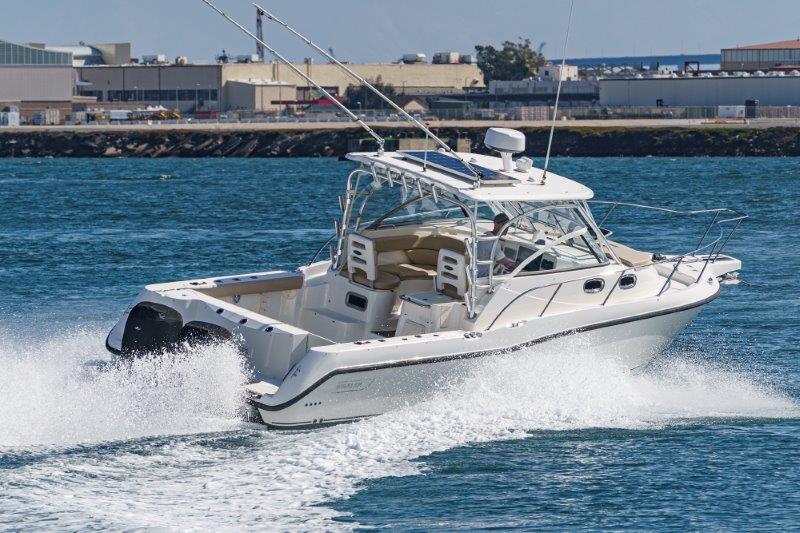 - Twin 300 horse power Mercury Verado Four-Stroke engines (760 hours)