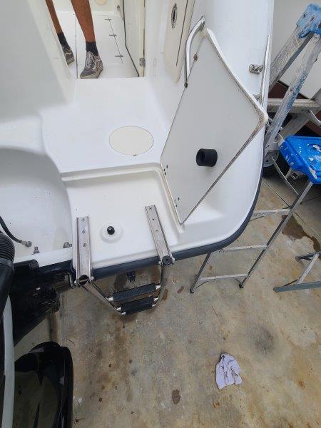 - Covered telescoping stainless steel swim ladder with stainless steel grab rail