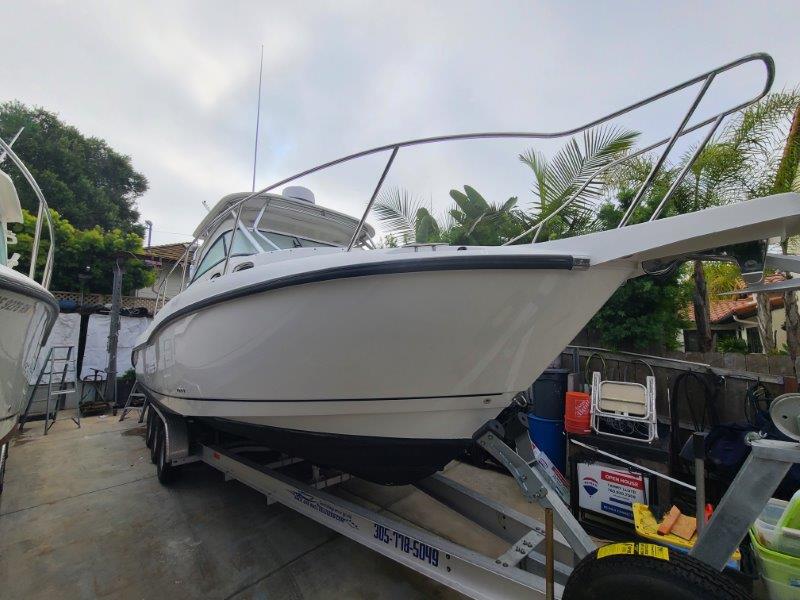 LOADED AND PRISTINE CONDITION! Highly upgraded 305 Conquest including 120v power inverter, solar panel, storage canvas package, Garmin electronics package, helm enclosure and lots more. Powered by the preferred 300 HP Mercury Verado 4-Stroke Engines. These are the same engines used by the US Coast Guard, Home Land Security, Boarder Patrol and 100s of other commercial boats. The Mercury Verado engines are known to last well over 4,000 hours before routine overhaul due to Mercury’s advanced and efficient 4-stroke engineering.