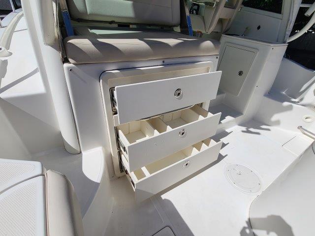 An overview of the storage space available on this Boston Whaler 315 Conquest: