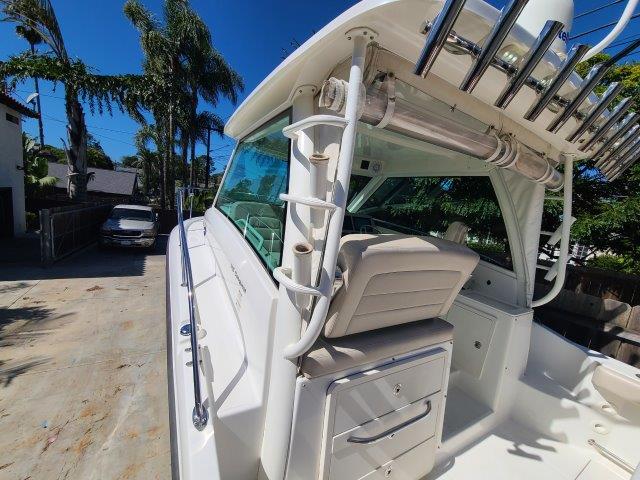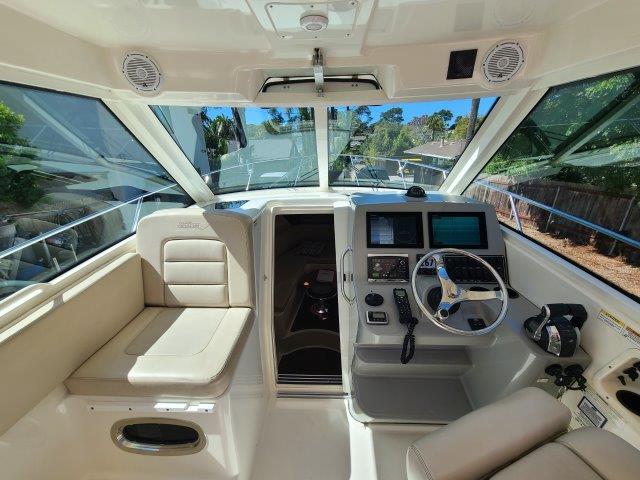 This Boston Whaler 315 Conquest is in pristine condition inside and out. West Coast location. Power by the 300 HP Mercury Verados w/ power steering, digital shift and the SmartCraft display. Verado engines are commercial grade used by the US Coast Guard known to last well over 4,000 hours before overhaul due to Mercury’s advanced and efficient 4-stroke engineering. Call exclusive agent below to view.