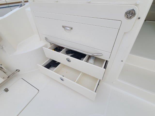 An overview of the storage space available on this Boston Whaler 315 Conquest: